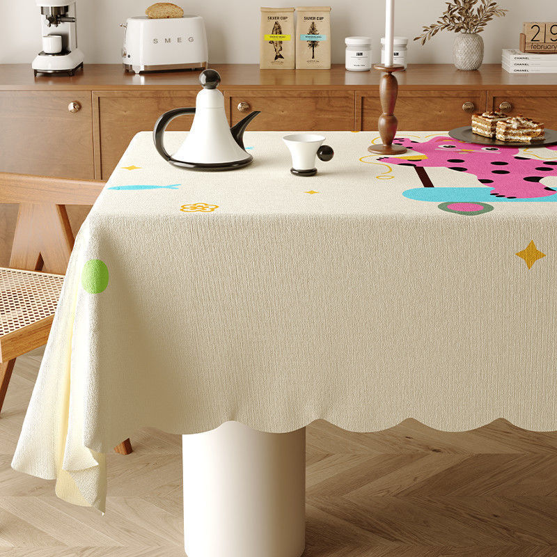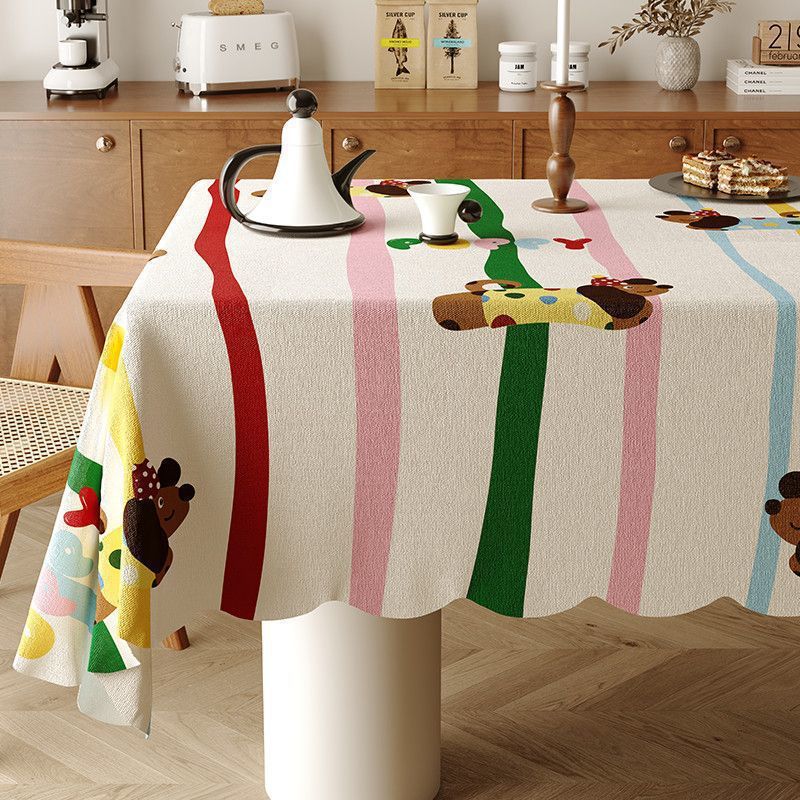Cute cartoon tablecloth with a dopamine-inducing light luxury feel, rectangular coffee table cloth, heat-resistant table mat, good product wholesale