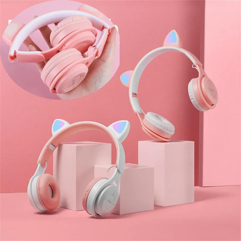 Cute Cat Cuffie Bluetooth Cuffie wireless Auricolari musicali con microfono per Iphone 14 13 PC Supporto TF Card Bambini