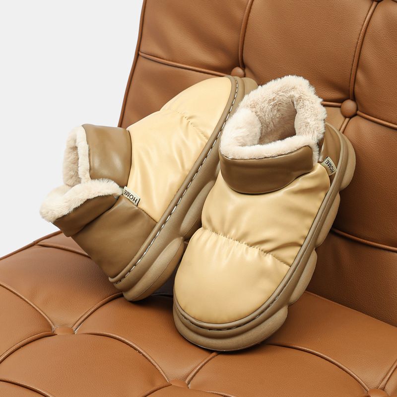 da indossare all'esterno in inverno, con un tallone imbottito per il calore interno e suole spesse impermeabili. Pantofole di cotone per il post-parto
