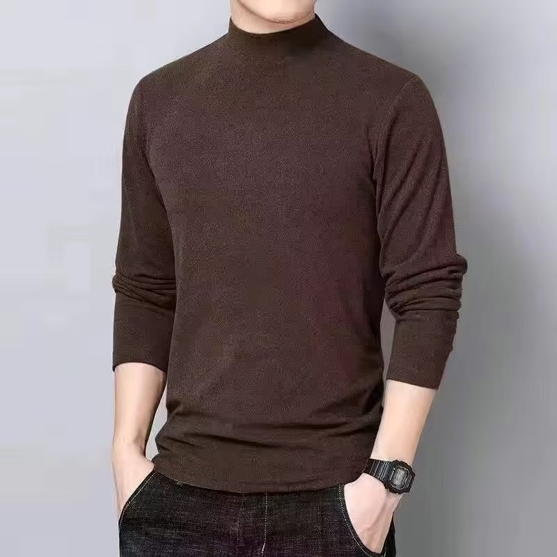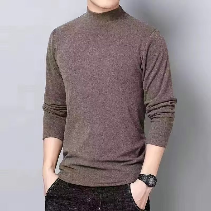 De Rong Bottom Shirt Men's Long sleeved T-shirt New Autumn Half High Neck Inner Layup Solid Color Warm Underwear Versatile Top