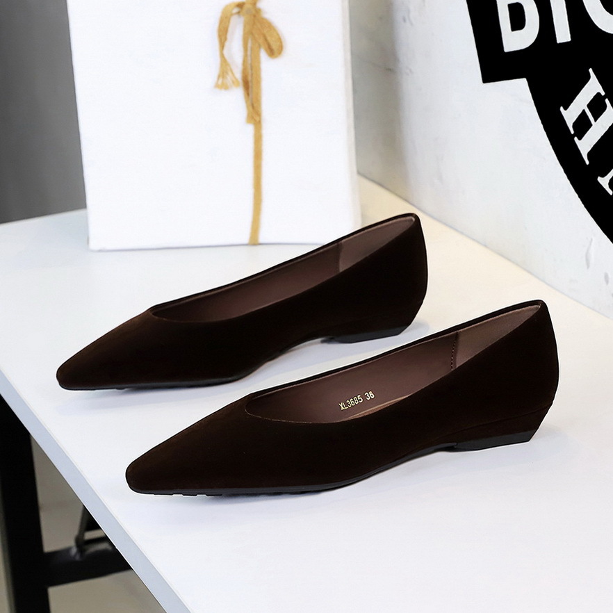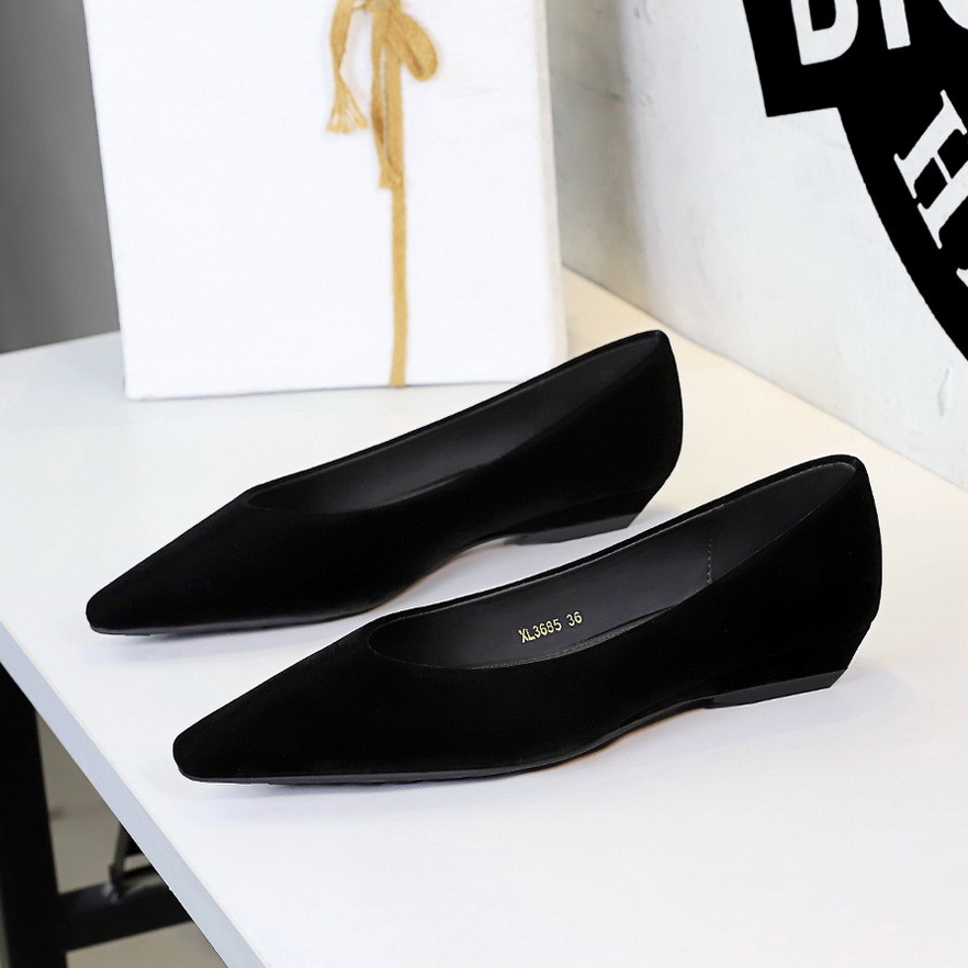 3685 Scarpe basse da donna in stile coreano con punta affusolata, zeppa bassa, tacco a spillo, in velluto, modello slip-on, eleganti, modello OL.