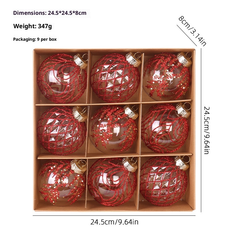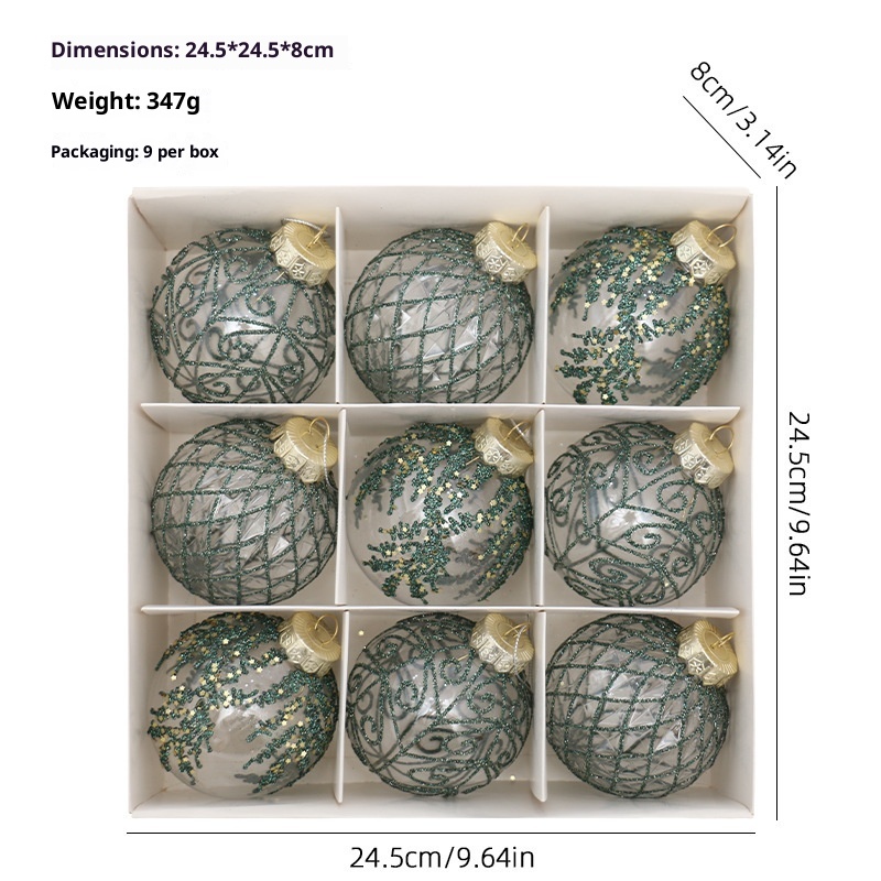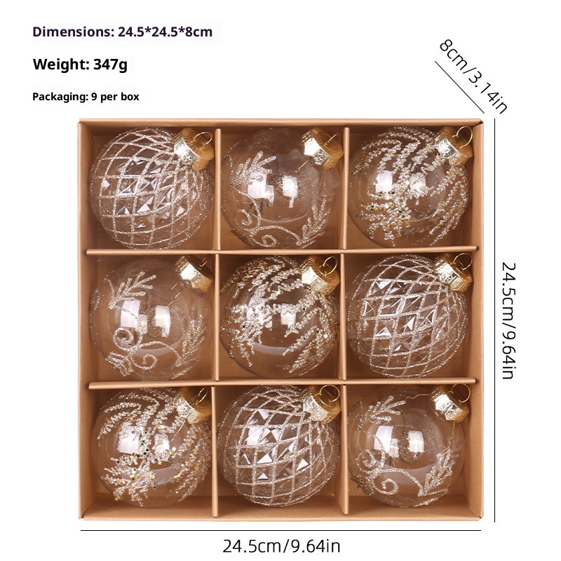 Decorazioni per l'albero di Natale con palline trasparenti in PET dipinte a mano da 8 cm/9 pezzi di Lillian Cross-Border