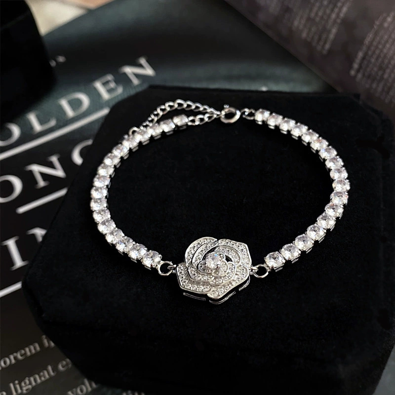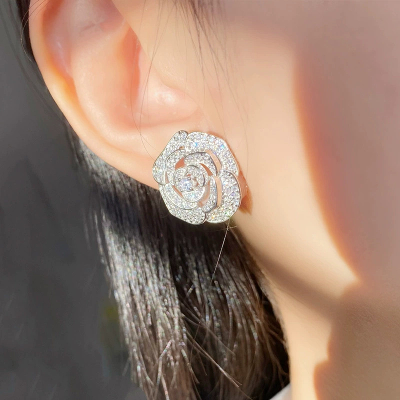 Camellia flower niche design, temperament, socialite, hollowed out rose necklace, earrings, open ring, full diamond bracelet, female