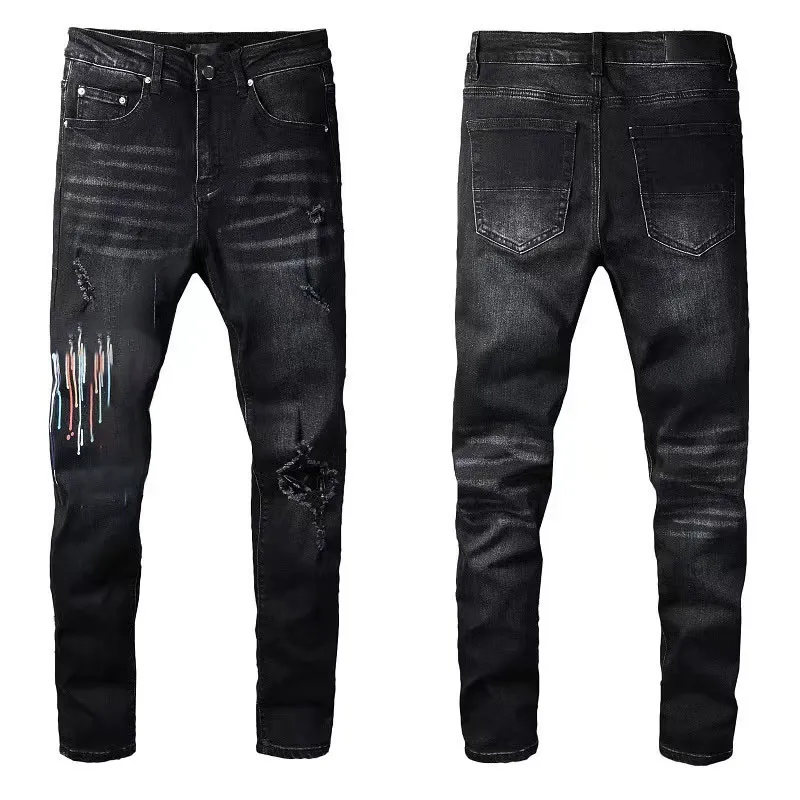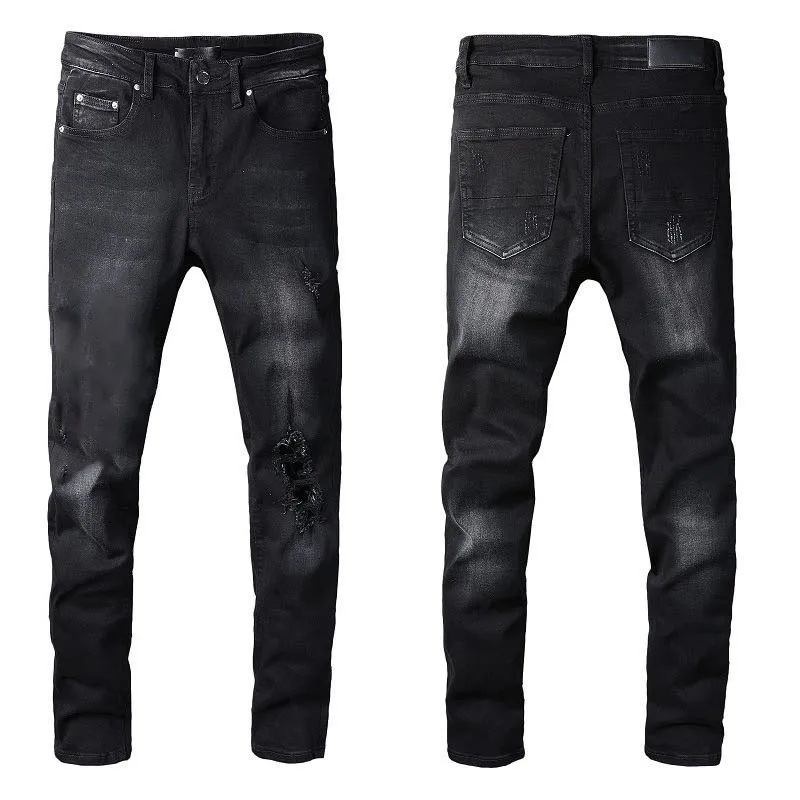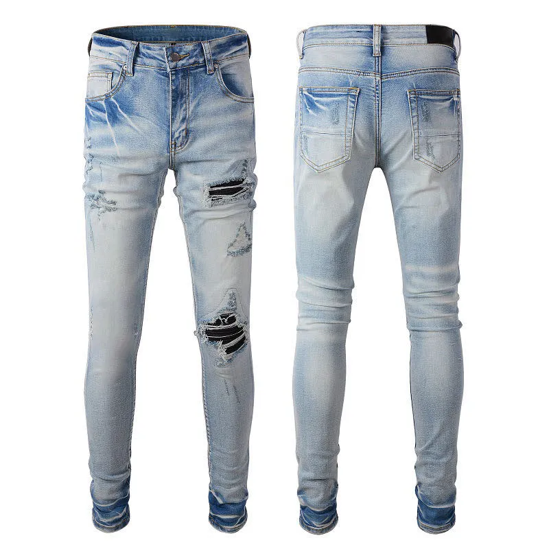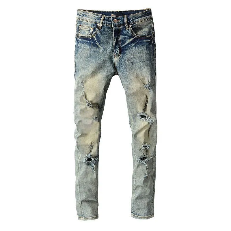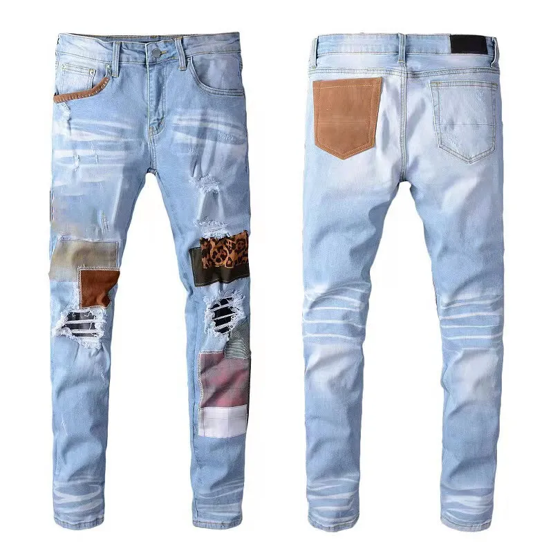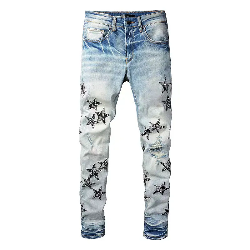 Designer Stack Jeans European Purple Jean Men Ricamo Quilting Strappato per Trend Brand Vintage Pant Mens Fold Slim