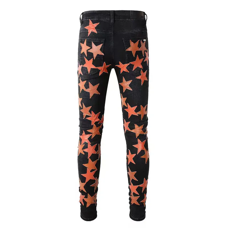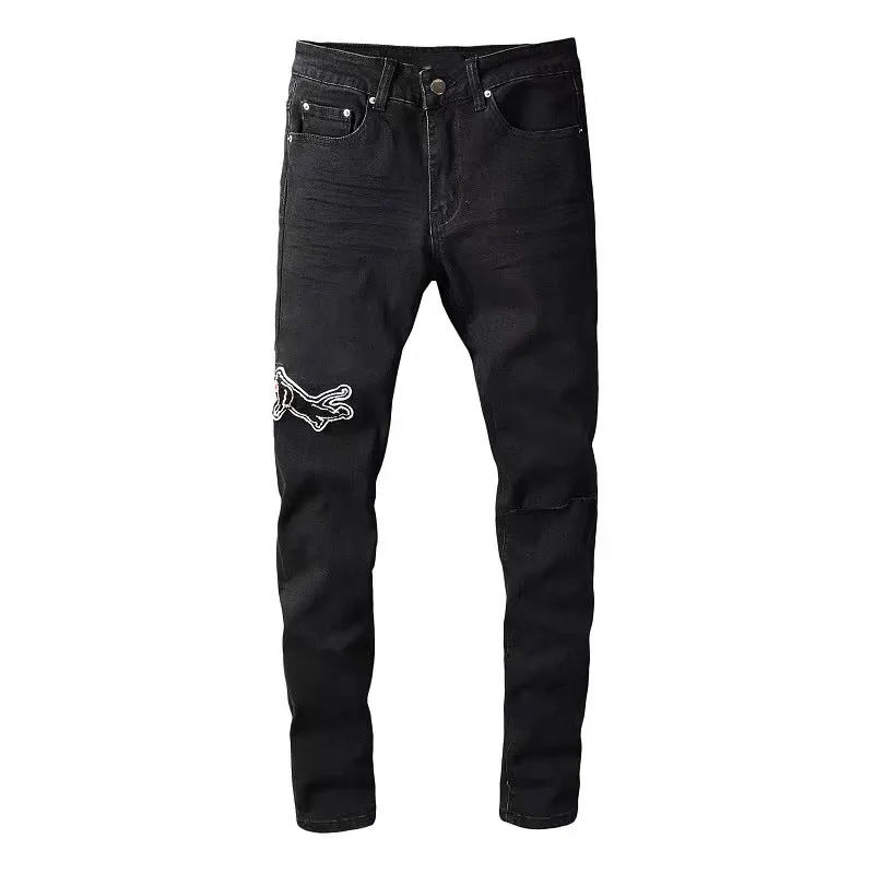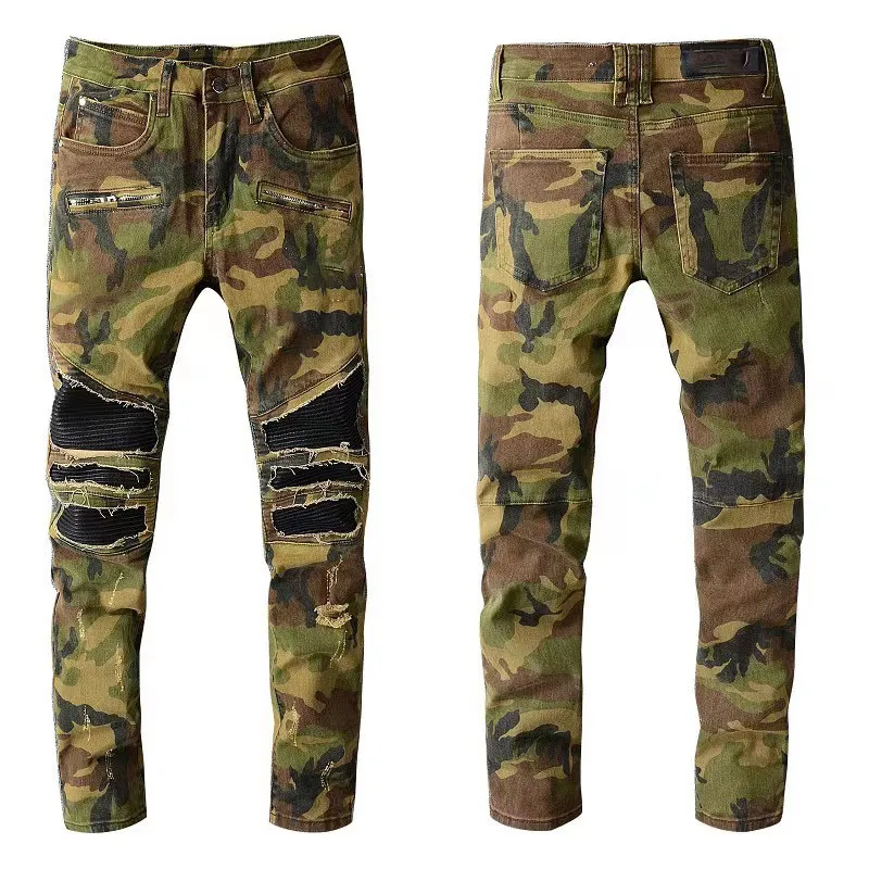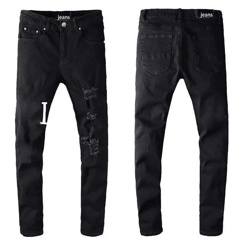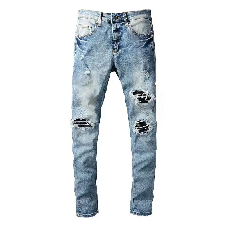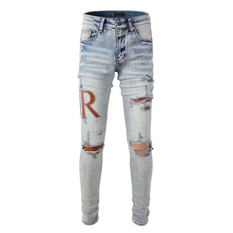 Designer Stack Jeans European Purple Jean Men Ricamo Quilting Strappato per Trend Brand Vintage Pant Mens Fold Slim