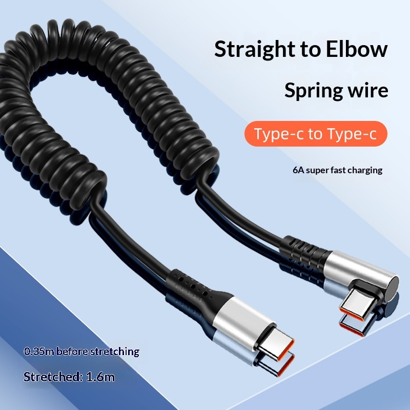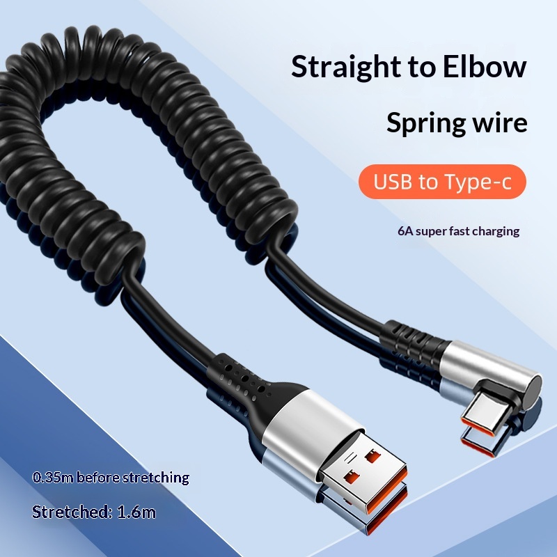 Cavo di ricarica Digitex Data Type-C Super Fast Right Angle 6A, supporto per auto retrattile a molla per telefono cellulare da 66 W, schermo di proiezione