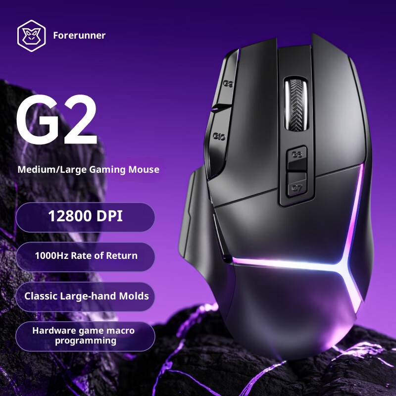 Brand:EWEADN/Forward Runner,Item Number:G2,Time to market:2025.4.16,Type:Laser Mouse,Mouse size:Rat ≥120mm,Connection method with a computer:Wired,Compatible Models:Desktop Computer,Optical resolution:1600dpi,Number of Buttons:10,Interface:USB,Does it support ergonomic design?:Support,Adjustable resolution:Six-speed,Operating distance:1.5M,working method:Optical,Direction of the scroll wheel:Four-way roller,Long cable length:About 1.5m,Product Dimensions:130*79*42mm,Product weight:69 grams,Custom Printing:Sure,After-sales service:Storefront Three Guarantees,Package contents list:Mouse, button cover, charging cable, manual,Color:G2 Dark Night Black-Wired Version, G2 Star Ring White-Wired Version,We have authorized private labels available:yes,Is it exclusively for cross-border export supply?:No,Customizable:Support,Is it a patented source product?:No,Power supply mode:Comes with a charger