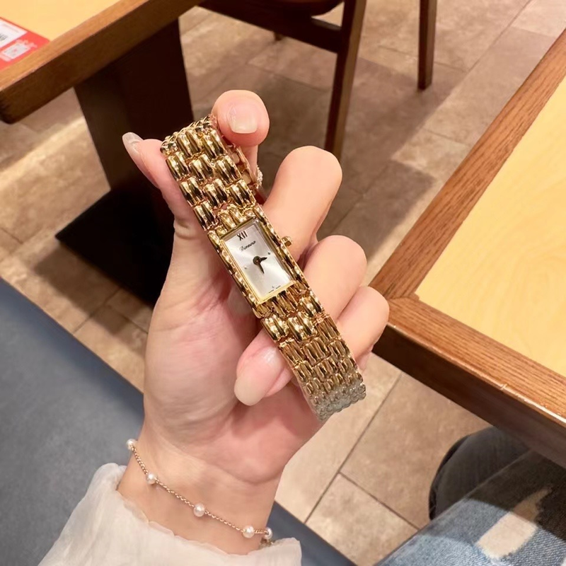 Dimeina, nuovo orologio da donna in stile bracciale in acciaio quadrato, stile vintage, con piccolo cubetto di zucchero, semplice e alla moda, in oro
