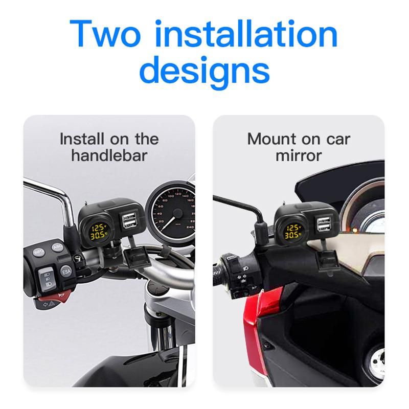 Display digitale per moto Caricatore rapido per cellulare doppio USB Voltmetro Termometro Presa per display per caricabatterie per telefono cellulare HMM