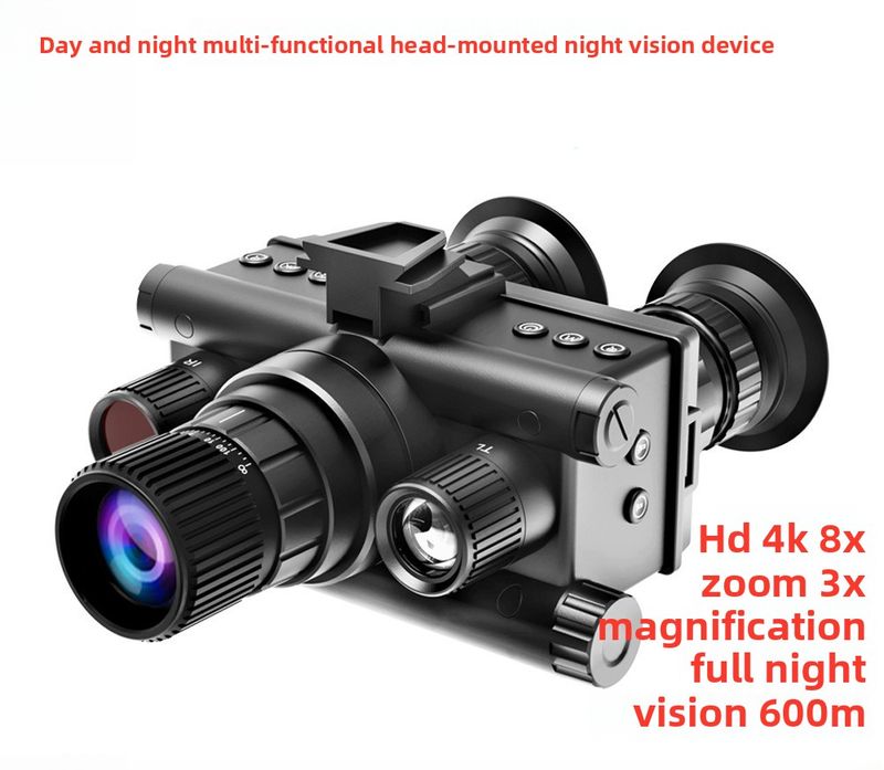 Dispositivo montato sulla testa, binocolo HD 4K con doppio schermo rotondo, occhiali da esterno, telescopio per visione notturna a infrarossi