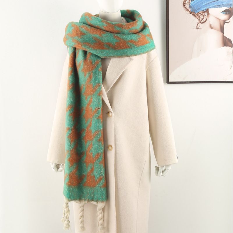 Dopamine Outfit Sciarpa in mohair pied de poule colorata 2024 Autunno Inverno Caldo Morbido Nappe Grande Scialle All'ingrosso