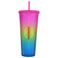Tazza di paglia di plastica a doppio strato, grande capacità, creativa, 710 ml, tazza di durian, tazza portatile, tazza con gradiente arcobaleno che cambia colore luminoso