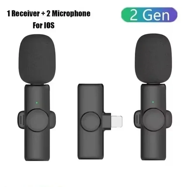Microfono Lavalier professionale wireless doppio per iPhone, Android, cellulare, PC, microfono con asola