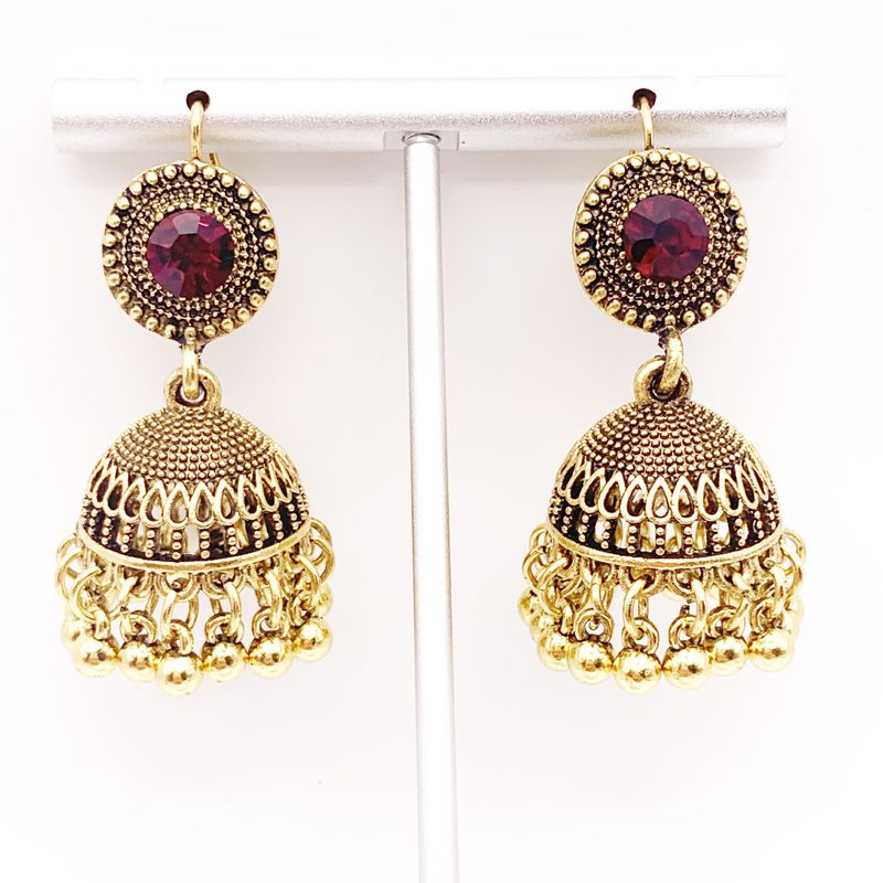 E076 Orecchini rossi versatili in stile etnico bohémien indiano più venduti per le donne_voghion.com