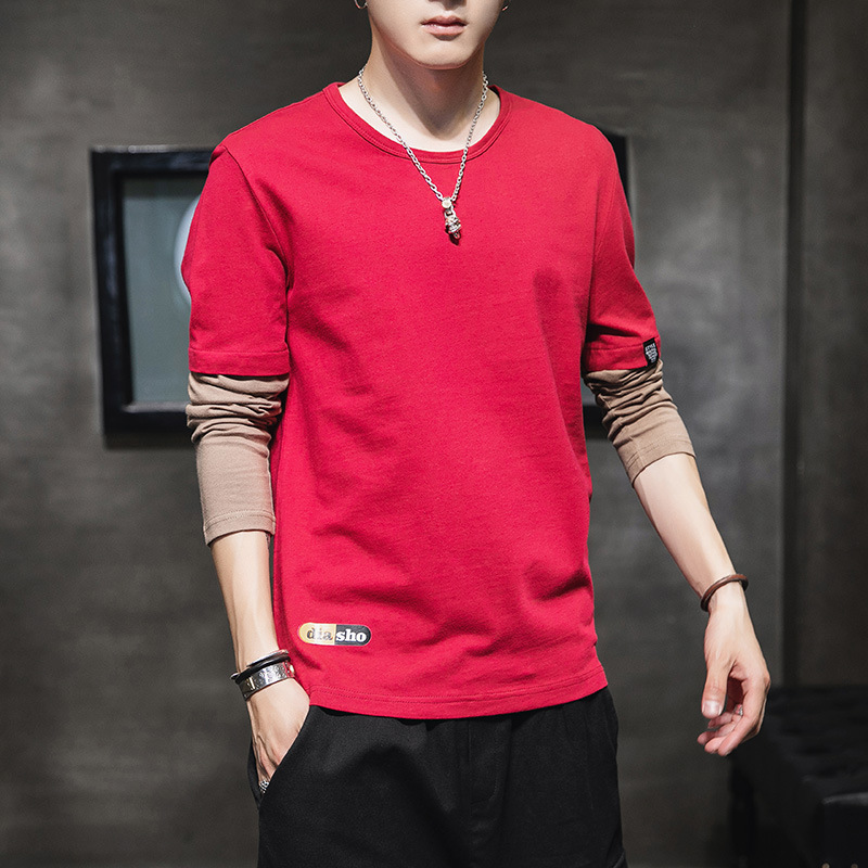 T-sh a maniche lunghe da uomo di inizio autunno, girocollo coreano a contrasto, tutto in cotone, sottofondo di vendita caldo vuoto casual