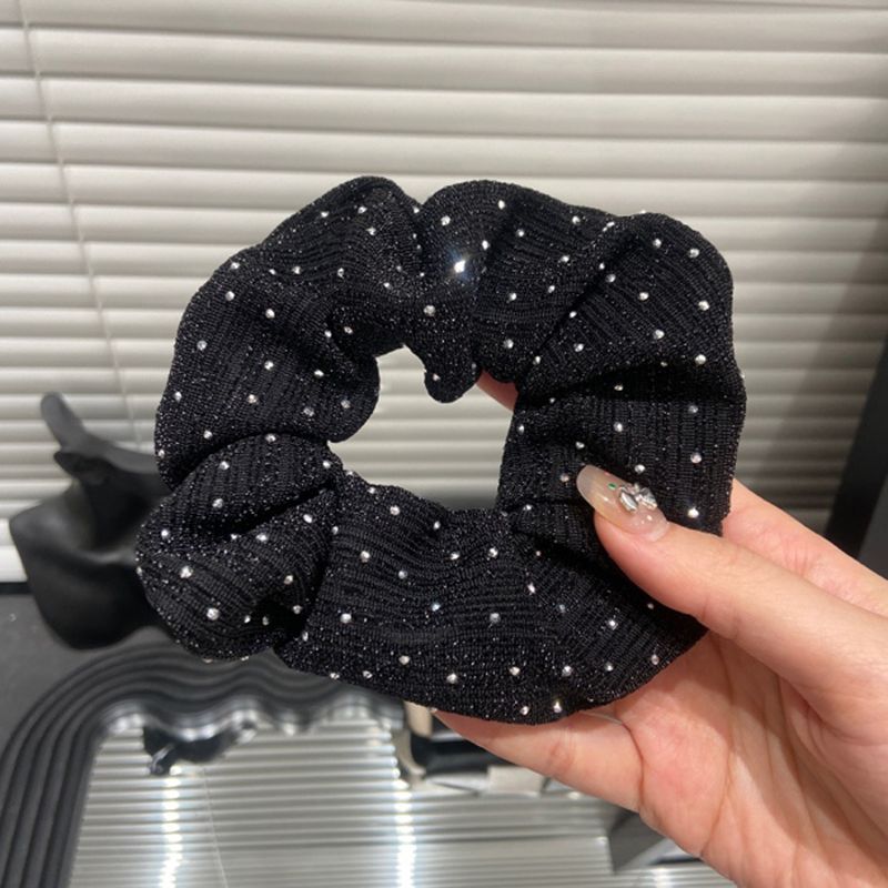 French Style Black and Silver Starry Sky Scrunchie for Women, Elegant Hair Tie, Rubber Band