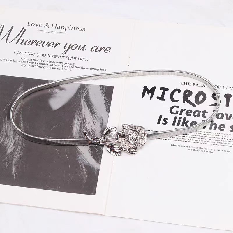 Small niche design, elastic and elastic, silver rose fashion, spicy girl belt, versatile and high-end accessory for women's daily life