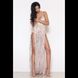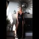 • Leg Reveal: Thigh-high slit with sheer mesh insets