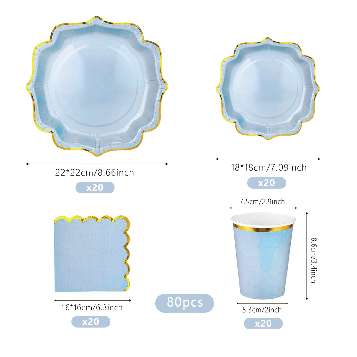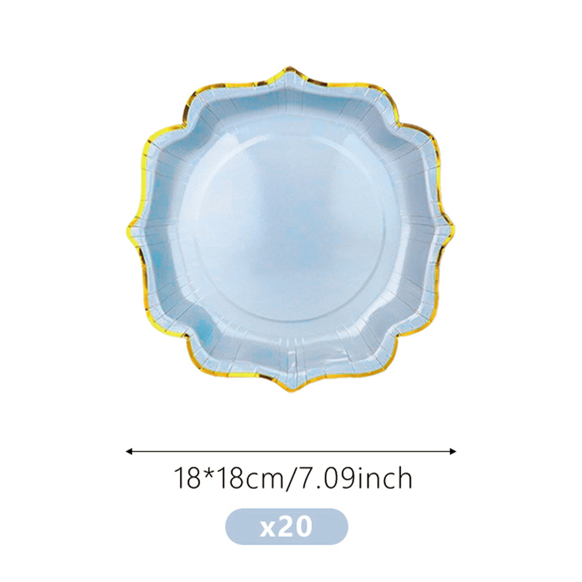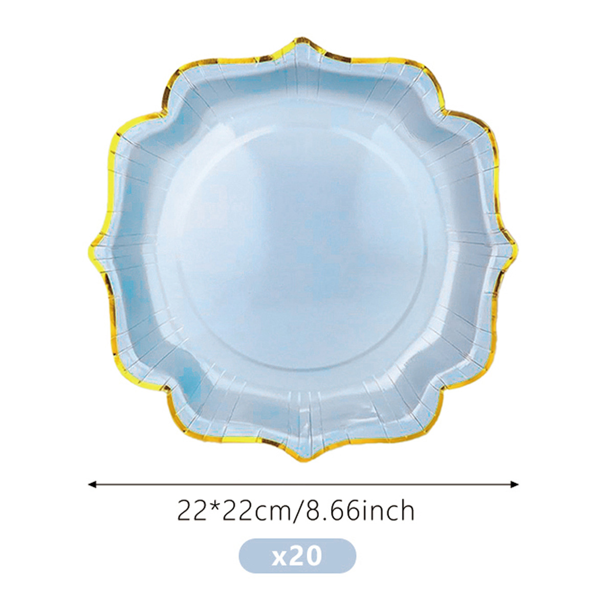 Tired of dull disposable tableware that ruins your party vibe? Our blue-and-gold set transforms ordinary gatherings into luxurious events. The metallic accents catch the light, while the sturdy paper construction ensures no compromises on functionality.