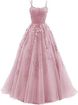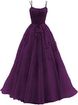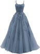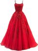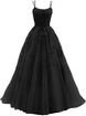Elegante abito da sera lungo con spalline sottili e applicazioni floreali - Abito da festa in chiffon a trapezio per donna - US 0-28W