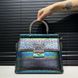 Elegante borsa a mano da donna in pelle sintetica con texture struzzo blu pisello, con tracolla staccabile e chiusura magnetica, color oro
