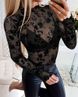 Elevate your wardrobe with this stunning lace-trim blouse, designed to blend sophistication with effortless style. The sheer mesh fabric and delicate Peter Pan collar create a romantic yet contemporary look, perfect for the fashion-forward woman.