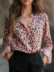 Elegante camicetta con stampa leopardata per donna - Elegante camicia a maniche lunghe con stampa animalier chic, comodo tessuto in poliestere, versatile per lavoro e tempo libero_voghion.com