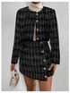Elegante completo da donna in stile Chanel con giacca corta e minigonna - Tessuto misto poliestere di alta qualità, classico design a righe/quadri