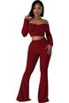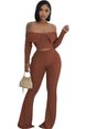 Elegante completo di pantaloni palazzo da donna: camicetta a maniche lunghe e pantaloni a gamba larga, misto poliestere-spandex (S-XXL, rosso/marrone/giallo, da sera)