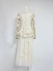 Elegante completo due pezzi in pizzo francese e rete – Ricami floreali e dettagli con fiocco – Top snellente in vita + gonna fluida in tulle – Stile vintage romantico
