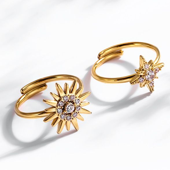 Elegant and Sophisticated Adjustable Sunflower Diamond-Studded Ring French Style Titanium Steel Star Women's Full Diamond Jewelry