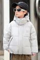 Elegante piumino invernale per bambini, 55% piumino d'anatra bianco, giacca con cappuccio in stile coreano (120-170 cm, bianco/marrone/nero/grigio argento)