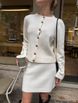 Upgrade your wardrobe with this sleek ribbed knit sweater and mini skirt set, designed for women who appreciate refined simplicity. The tailored fit and subtle button detailing create a polished look without sacrificing comfort.