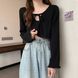 Elegant lace and lace V-neck long sleeved t-shirt for women, 2024 autumn new collection with strap design, niche slim fit top trend