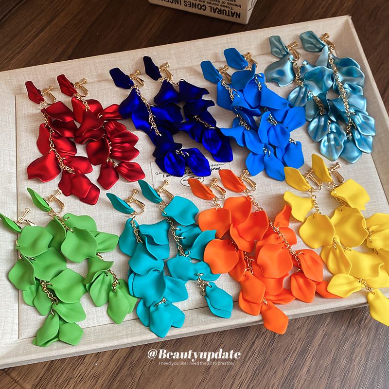 Eleganti orecchini francesi con nappa a forma di petalo di rosa, non forati, di nicchia, leggeri e di alta qualità