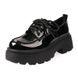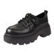 Emexiang Height-Increasing Thick-Soled British Style Women's Leather Shoes 6cm Black Lace-Up Loafers for Autumn and Winter