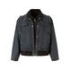 Eon Modish 25 Autunno Nuovo stile americano High Street Giacca in denim funzionale con collo alto e patchwork