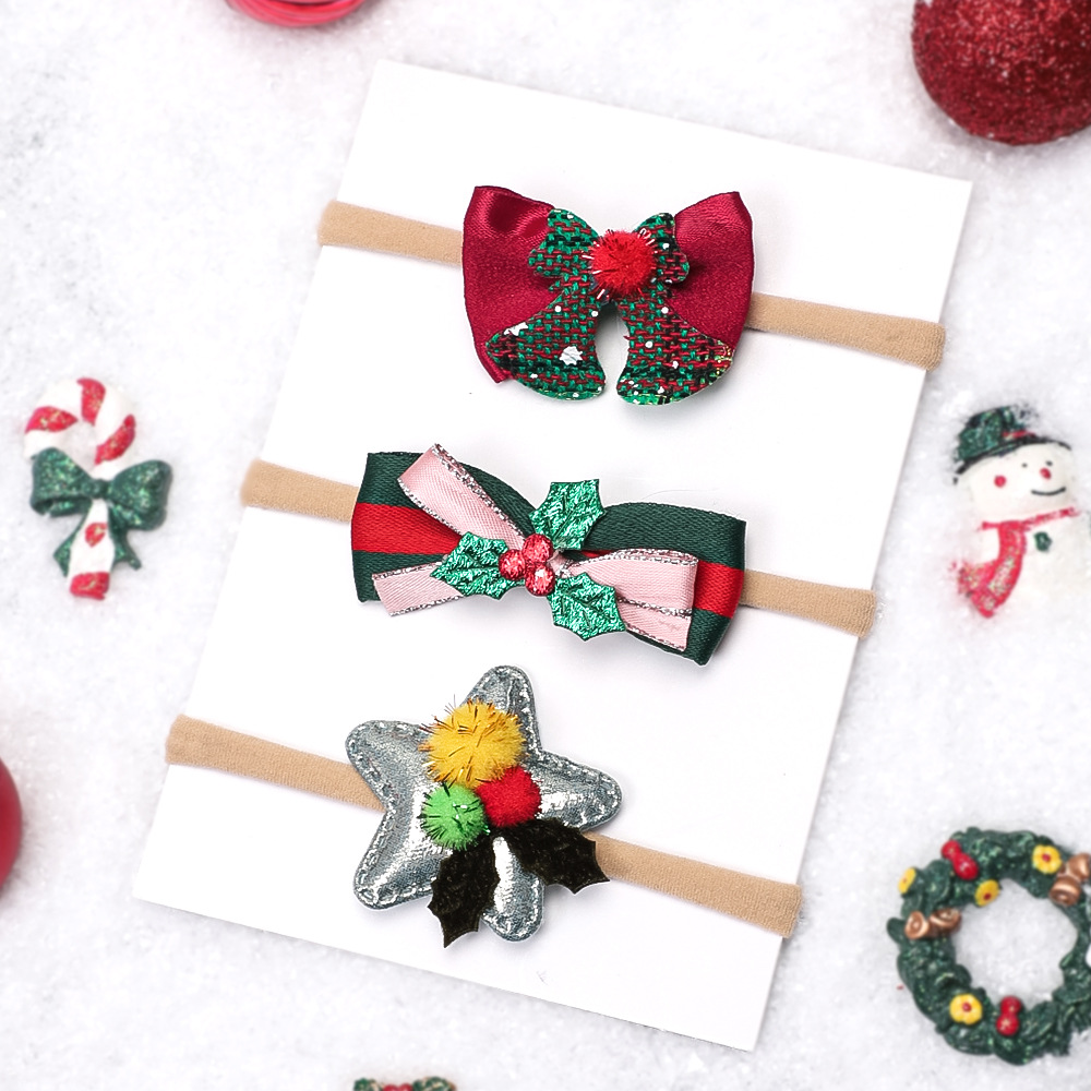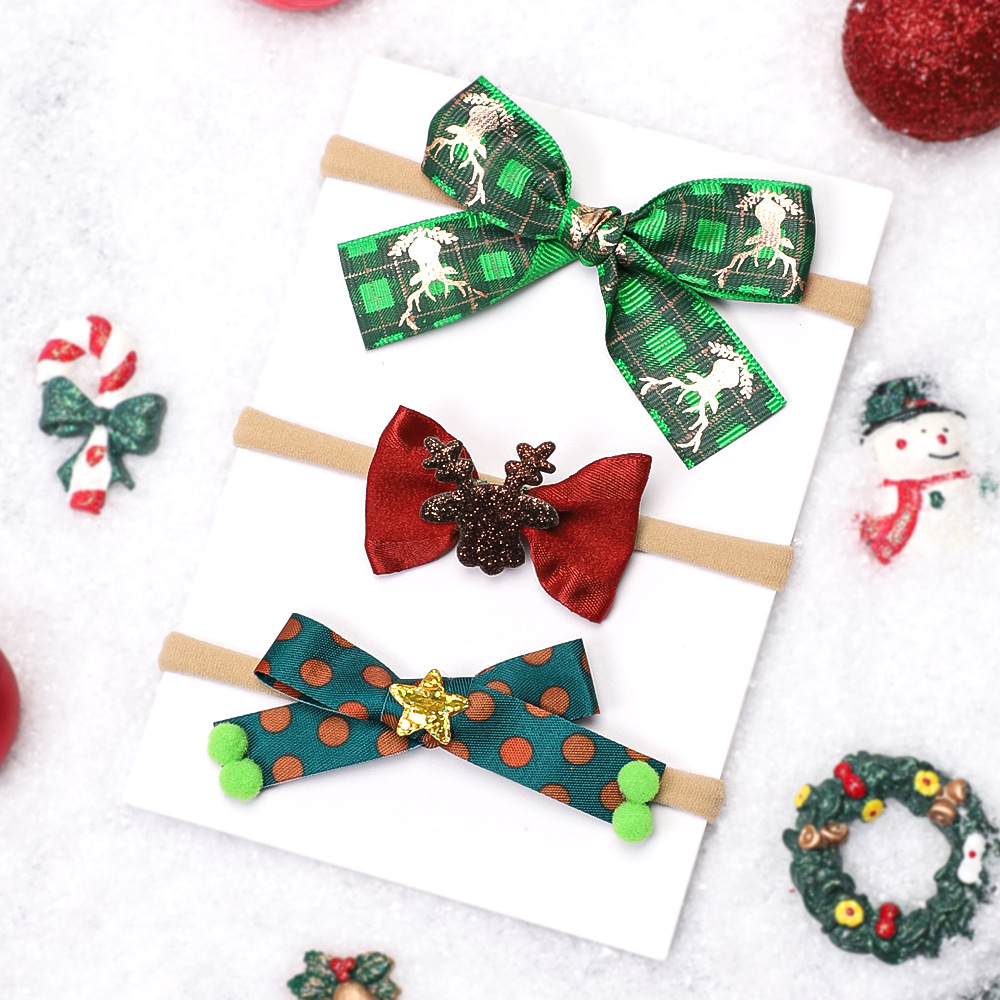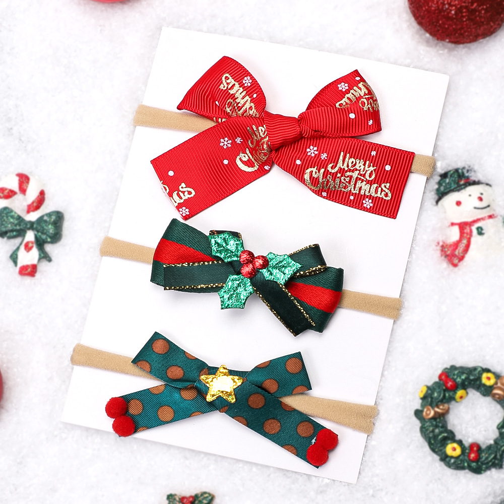 Europa e Stati Uniti nuovi accessori per capelli per bambini set di fasce per capelli fini per le vacanze di Natale per neonati fasce elastiche in nylon per neonati all'ingrosso