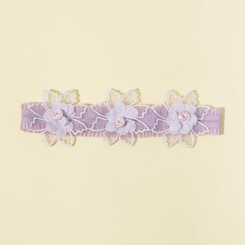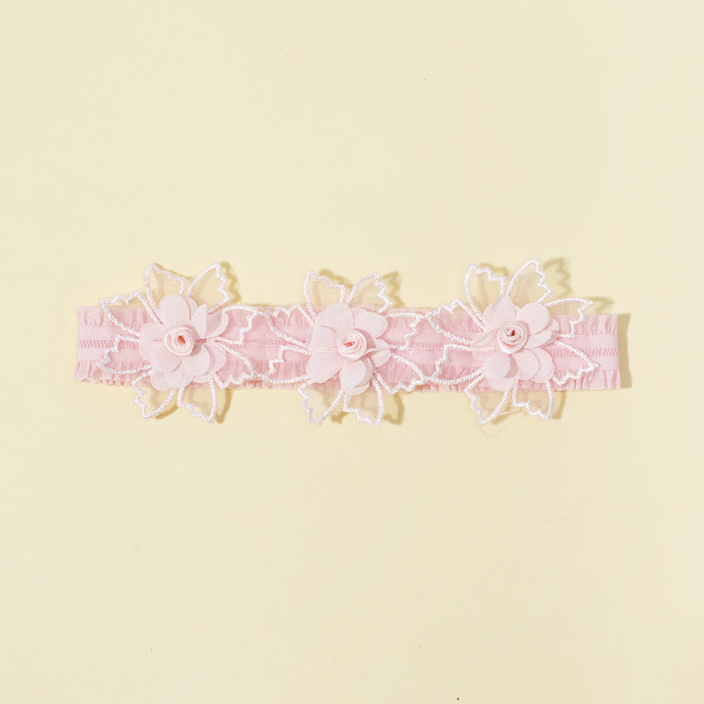 Europa e Stati Uniti transfrontalieri nuovi accessori per capelli per bambini tinta unita pizzo per bambini tre piccoli fiori fascia per capelli fascia elastica per bambini