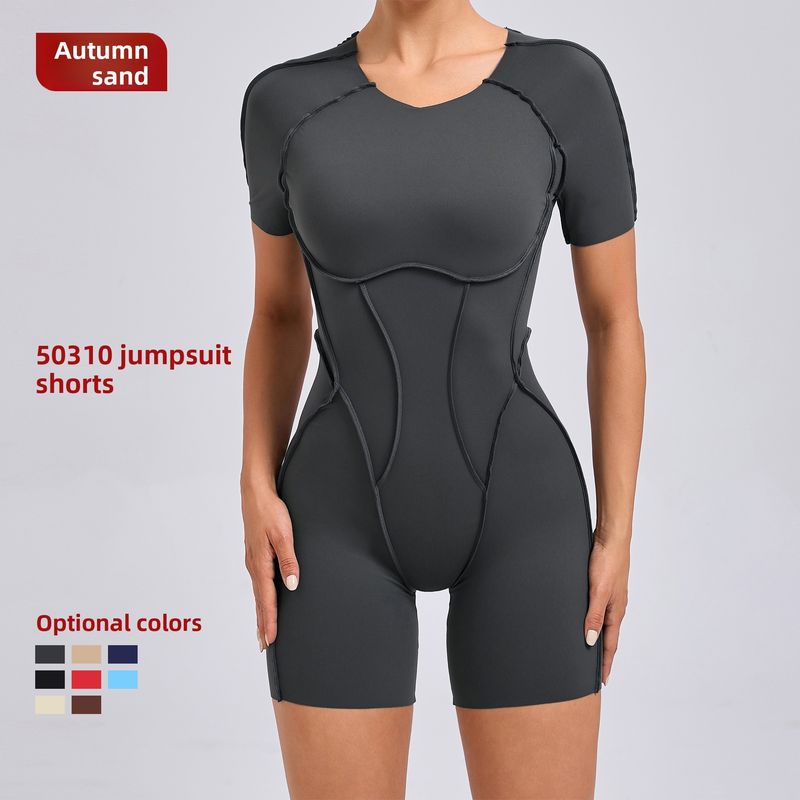 European and American Three-Dimensional Aesthetic Sports One-Piece Yoga Suit Tight Short Sleeve Backless Bodysuit Fitness Wear 50310