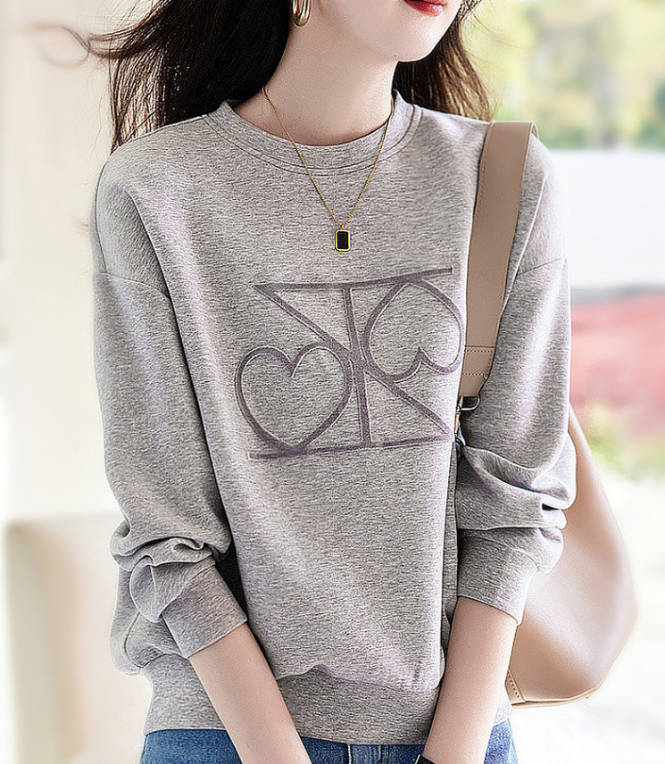 European casual round neck hoodie for women, 2023 spring new print, loose commuting, simple and fashionable top, outerwear trend