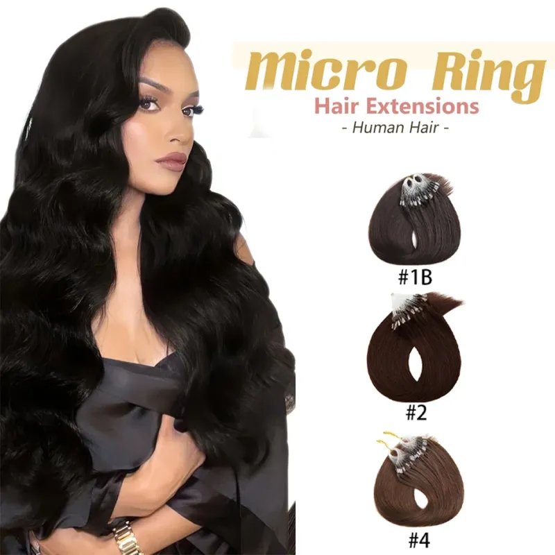 Extension per capelli con micro loop a linea di pesce dritta, 100% capelli umani Remy, morbide e setose, 16-26 pollici, 50 g, naturali, n. 1B, per donne