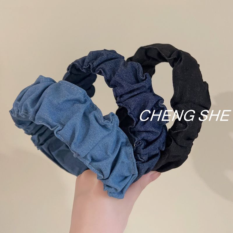 Fascia per capelli con bordo largo ed elegante in tessuto denim, con corona alta, versatile, per esterni, con clip, per donna