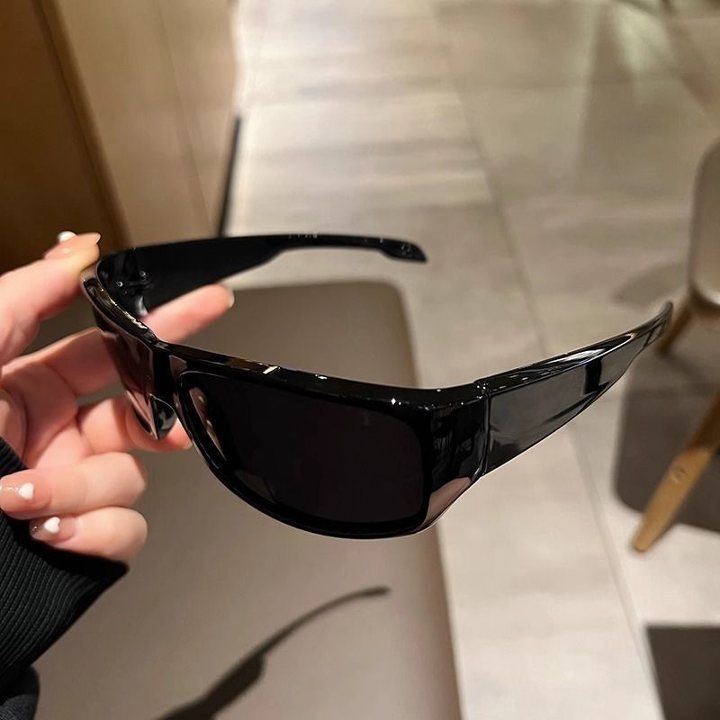 Purple Edge Shiny Futuristic Sunglasses for Women UV Protection Fashion Hot Girl Headband Slimming High-Value Concave Shape Sunglasses
