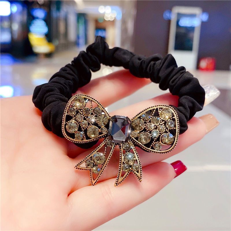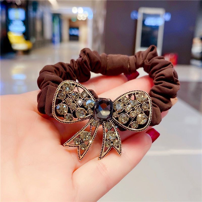 Fascia per capelli con fiocco di strass di alta qualità coreana, corda per capelli alla moda retrò, anello per l'intestino tenue francese, corda per la testa, elastico per capelli