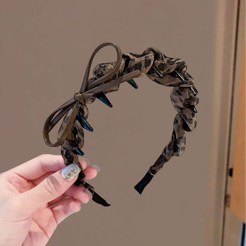 Wavy Toothed Leopard Print Bow Hairband High Skull Top Women's Daily Wear High-end Light Headband Hair Accessory