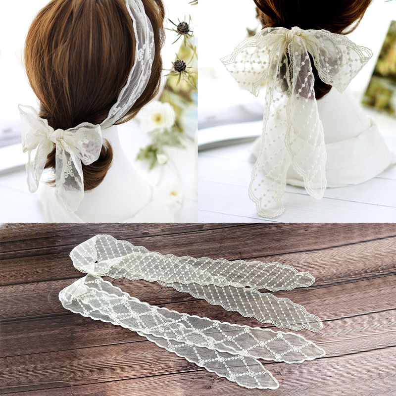 Fascia per capelli con ricami in pizzo coreano, multifunzionale, per capelli, da donna, celebrità di Internet, fata, nastro lungo, piccolo