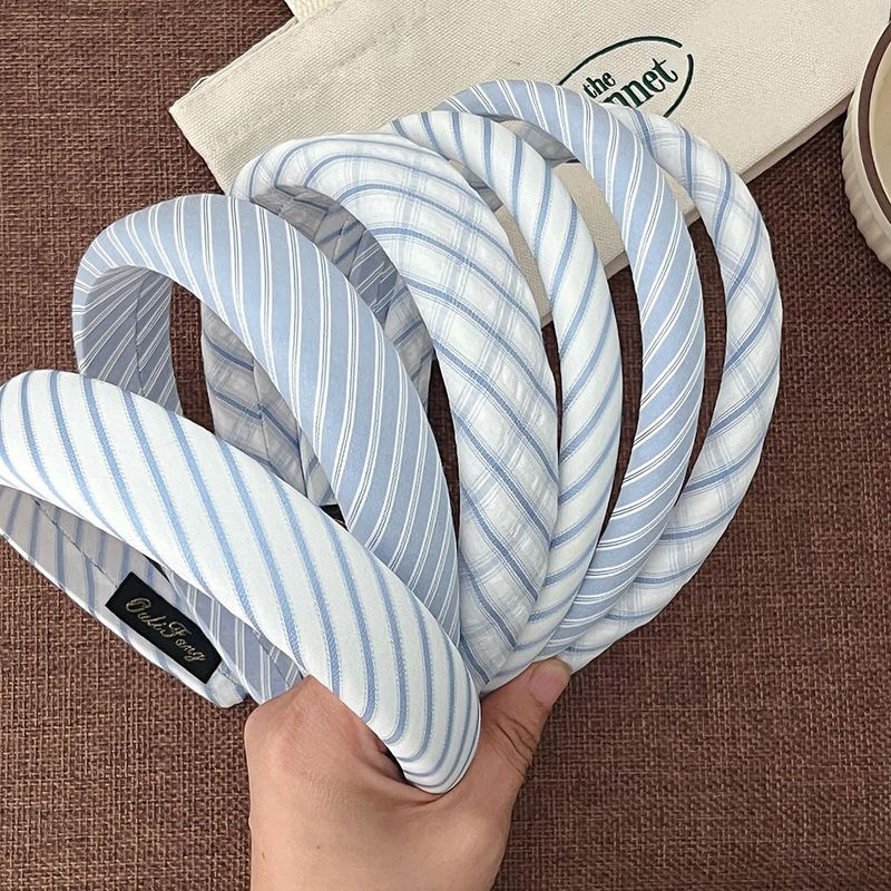 Korean Style Blue and White Plaid Elegant Thin Striped Headband Fresh Sponge Hairband New High Crown Hair Accessory for Women