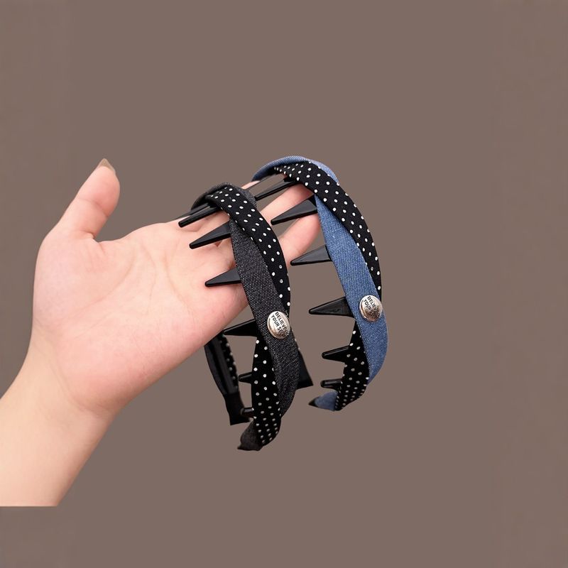 High-end Polka Dot Denim Headband for Women, New Hairband with Teeth, Hair Organizer, High Skull Top Hair Clip, Hair Accessories