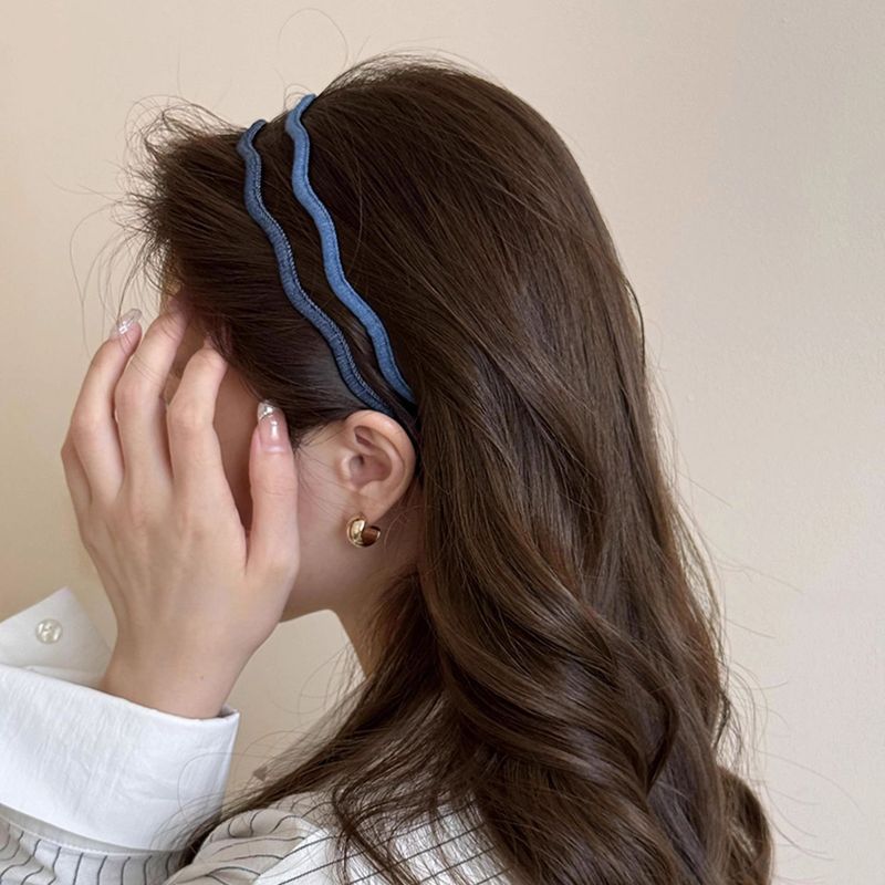 Fascia per capelli in denim Wave, per le donne che vogliono creare un temperamento semplice e versatile, caratterizzata da capelli pressati con una nuova moda